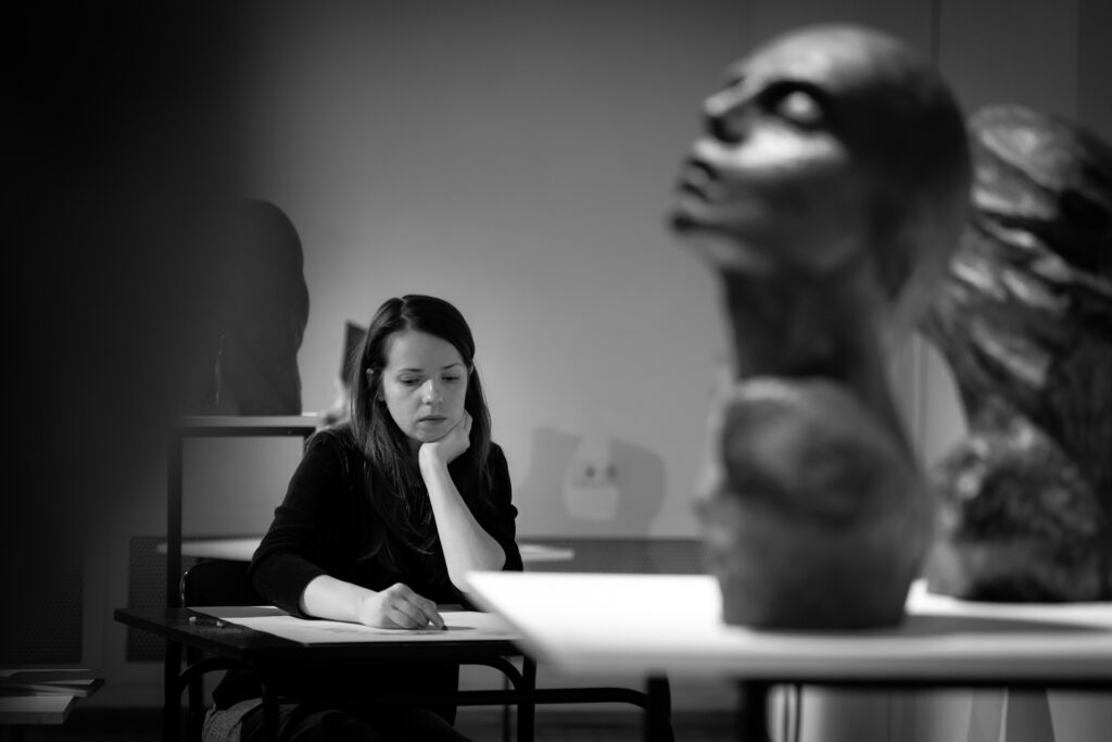 Szkicowanie pomiędzy rzeźbami JJ Kierskiego w BWA, Rzeszów.