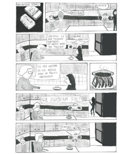 W 2024 roku miałam przyjemność brać udział w komiksowych warsztatach oraz całodniowym hackathonie rysowania komiksów o kobietach w Muzeum Komiksu w Krakowie. Choć wydawałoby się, że jeden dzień to niedużo czasu na początek, to okazało się wystarczająco żeby powstały cztery plansze Odysei Mamy.