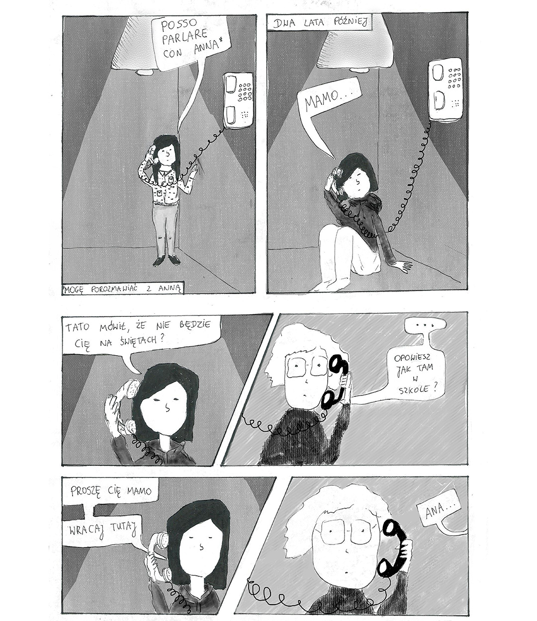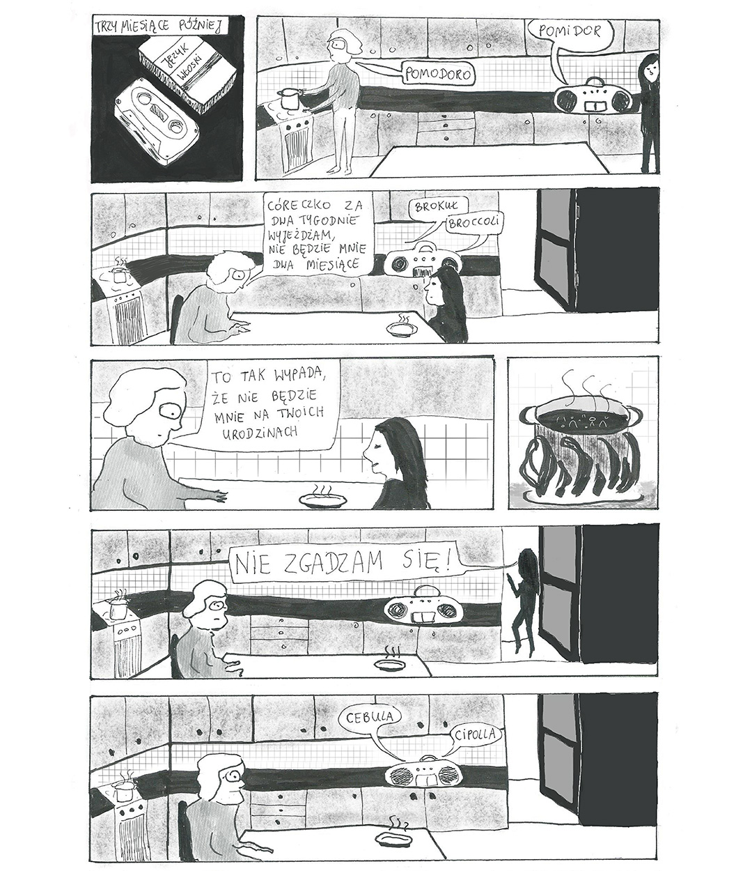 Pierwszy wyjazd. Dopiero uczy się włoskiego. Na miejscu musi jeździć samochodem. W Polsce nie jeździła, więc ćwiczy teraz, na włoskich drogach. Tymczasem w małym polskim miasteczku, na trzecim piętrze w bloku z wielkiej płyty, został mąż i czwórka dzieci. Najstarszy syn ma 22 lata, najmłodsza córka właśnie skończyła 10. Pensja taty w kraju i mama za granicą, nic nadzwyczajnego. Po masowych zwolnieniach w zakładach pracy takich mam jest więcej. Podczas gdy one, w małych busach wypchanych torbami, pokonywały dwudziestogodzinne trasy Polska–Włochy, my, dzieci, lepiej poznawaliśmy naszych ojców. Dom zmieniał się zupełnie co kwartał. Przez trzy miesiące obiady gotowali wspólnie, kolejne trzy tylko tata. I tak przez 10 lat.