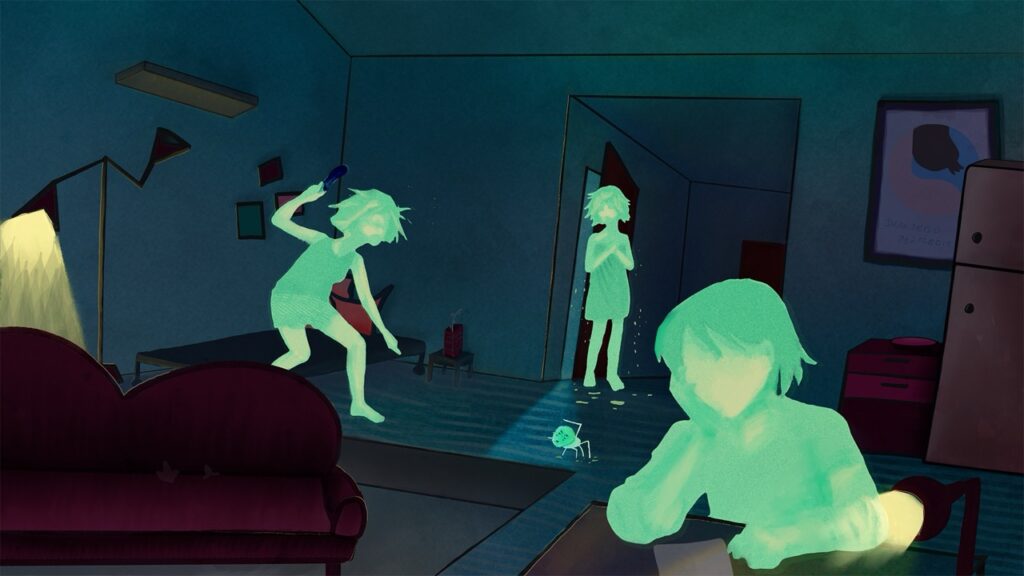 W mojej ilustracji najbardziej wyrazisty jest wygląd postaci. W trakcie pisania zakładałam, że opisywane bohaterki stanowią elementy rozbitej jedności. Idąc za tą myślą, przestrzeń mieszkania oddaje metaforę jednostki, zamieszkałej przez skłócone byty. Czyli człowiek z konfliktem wewnętrznym, upraszczając, sama siebie. Mieszkanie staje się tu obrazem jednej osoby, a lokatorki odłamkami jej wewnętrznych sprzeczności. Rysując, założyłam, że postaci mogą mieć ludzką formę i akcenty, ale jako odłamki osobowości nie powinny być zbyt konkretne. Stąd ich wygląd. Ilustratorka podążyła za myślą autorki, która w tym wypadku jest tą samą osobą. To trochę jak z reżyserem, który realizuje na scenie swój tekst. Częściej zgadza się z nim niż kłóci. Można w tym miejscu zadać pytanie, czy interpretacyjnie ciekawszym nie byłoby adaptowanie tekstu innego autora? Możliwe. Można też uważnie starać się unikać powtarzania po sobie. Lub wcale się tym nie przejmować i skupić się na spełnianiu swoich autorskich pragnień.